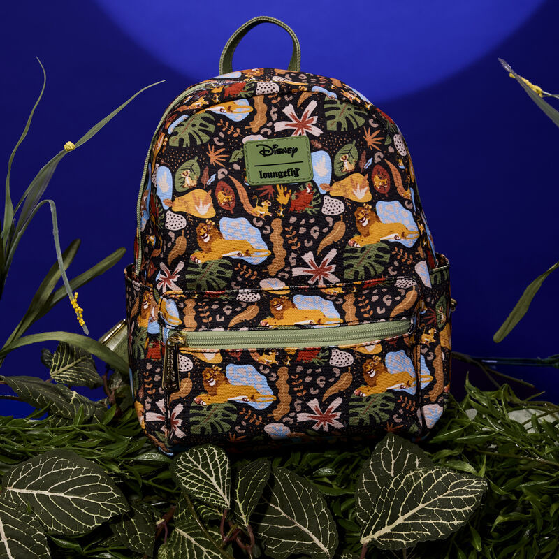 Lass uns wild werden! Reise in die afrikanische Savanne mit dem Loungefly Lion King 30th Anniversary Silhouette AOP Canvas-Rucksack. Dieser Mini-Rucksack zeigt einen farbenfrohen Allover-Druck der Figuren des Films auf schwarzem Hintergrund. Suchen Sie durch die grüne Vegetation und finden Sie Simba, Nala, Timon, Pumbaa und andere, die im Design der Tasche versteckt sind. Dieses Accessoire bietet viel Platz für Ihre Safari-Utensilien und ist perfekt für Disney-Fans, die eine ihrer Lieblingsgeschichten immer dabei haben möchten.