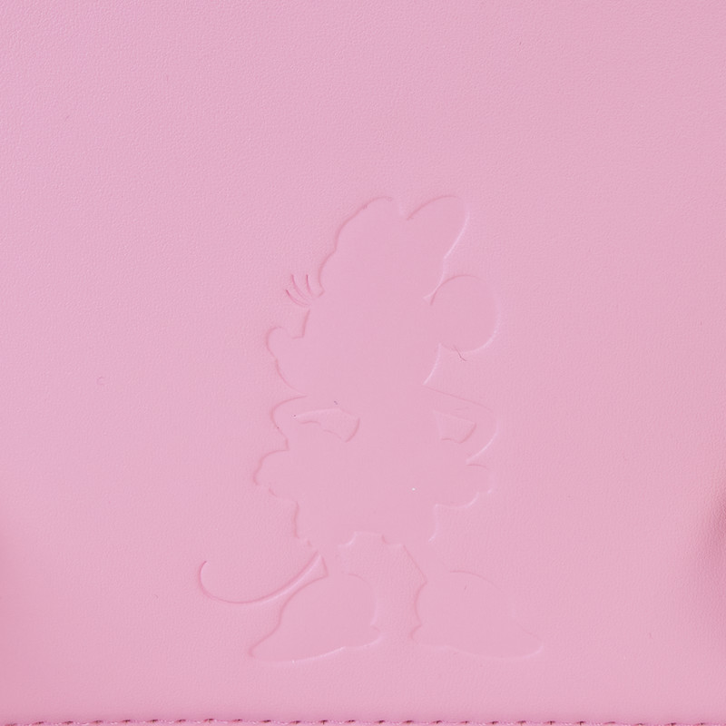 Der Loungefly Disney Minnie besteht aus veganem Leder (Polyurethan). Verstellbarer (abnehmbarer) Schultergurt. Umwandelbare Rucksackgurte. Reißverschlusstasche vorne. Glänzende, goldene Metallteile. Applikationen, geprägte 3D-Schleife und aufgedruckte Details. Passendes Innenfutter