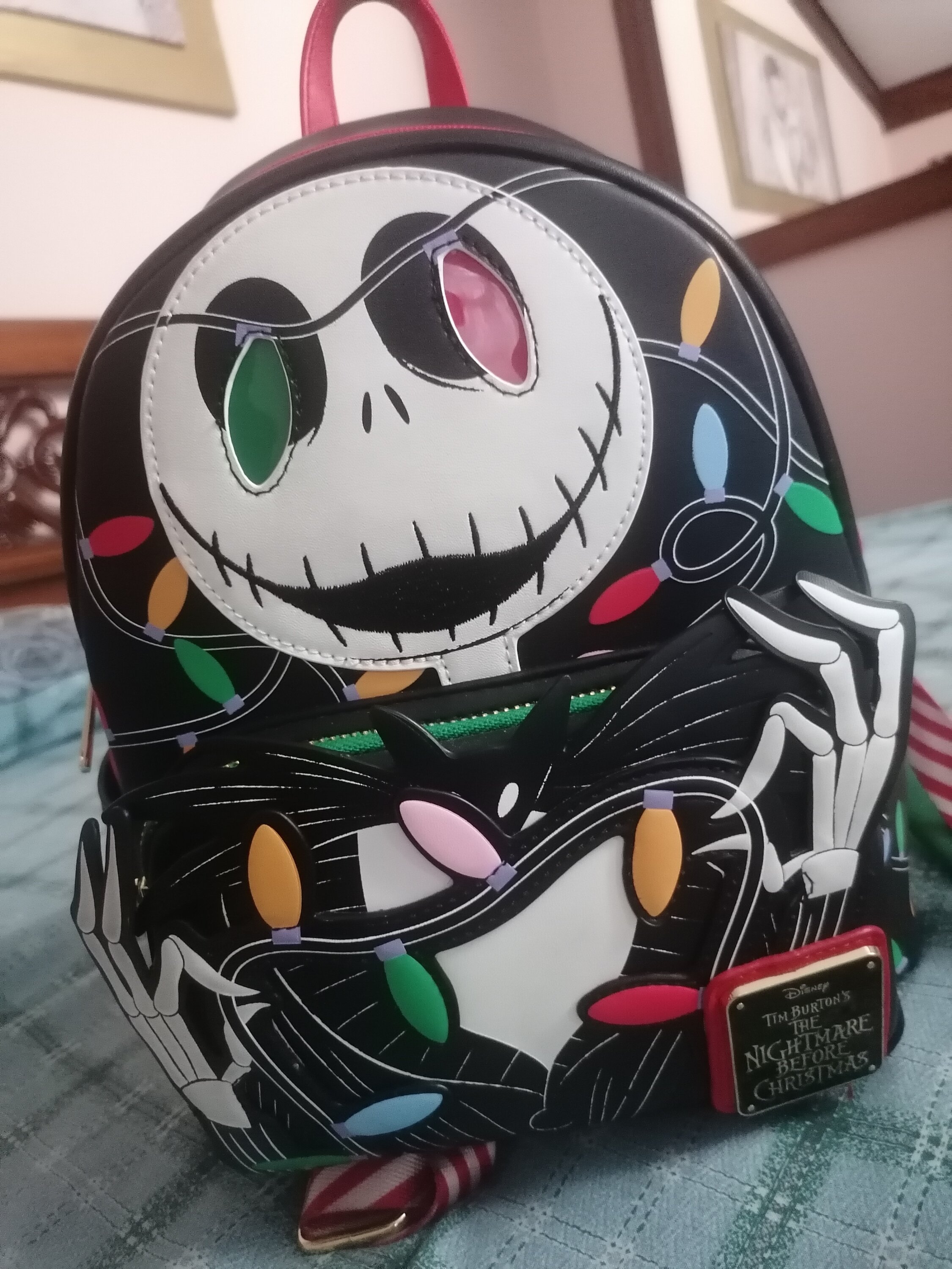 Wenn Ihre Augen beim Gedanken an Weihnachten leuchten, ist diese Tasche genau das Richtige für Sie! Jack Skellington verkörpert die Weihnachtsstimmung in einem Gewirr aus bunten Lichtern. Wenn das Tageslicht schwindet, sehen Sie ihn im Dunkeln leuchten, während zwei der Lichter mit leuchtenden Details aufleuchten! Dieser Mini-Rucksack ist eine festliche Ergänzung für jedes Outfit und verleiht jeder Weihnachtsfeier einen hellen Glanzpunkt.