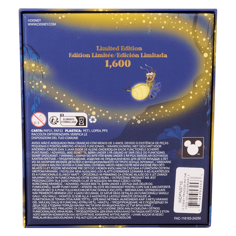 Merkmale: Emaille-Anstecker, glänzende Goldbeschläge, verschiebbare und im Dunkeln leuchtende Details, Funko/ Loungefly -Kronenprägung (Rückseite), limitierte Auflage von 1.600 Stück, Sammlerbox mit Schaufenster