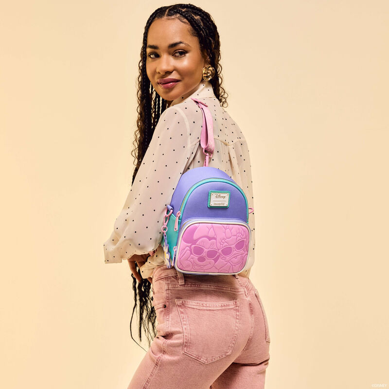 Oh, wie schön! Zeit für einen Einkaufsbummel! Inspiriert von unseren Lieblings-Trendsettern, setzt dieser Mini-Rucksack auf Pastellfarben, die Minnie und Daisys weltberühmten Stil treffen. Tauschen Sie die Riemen aus, um die Tasche in Ihrem bevorzugten Stil zu tragen! Mit viel Platz für Ihre mode Must-haves wird dieses Accessoire Ihr bester Begleiter auf jedem Ausflug sein.