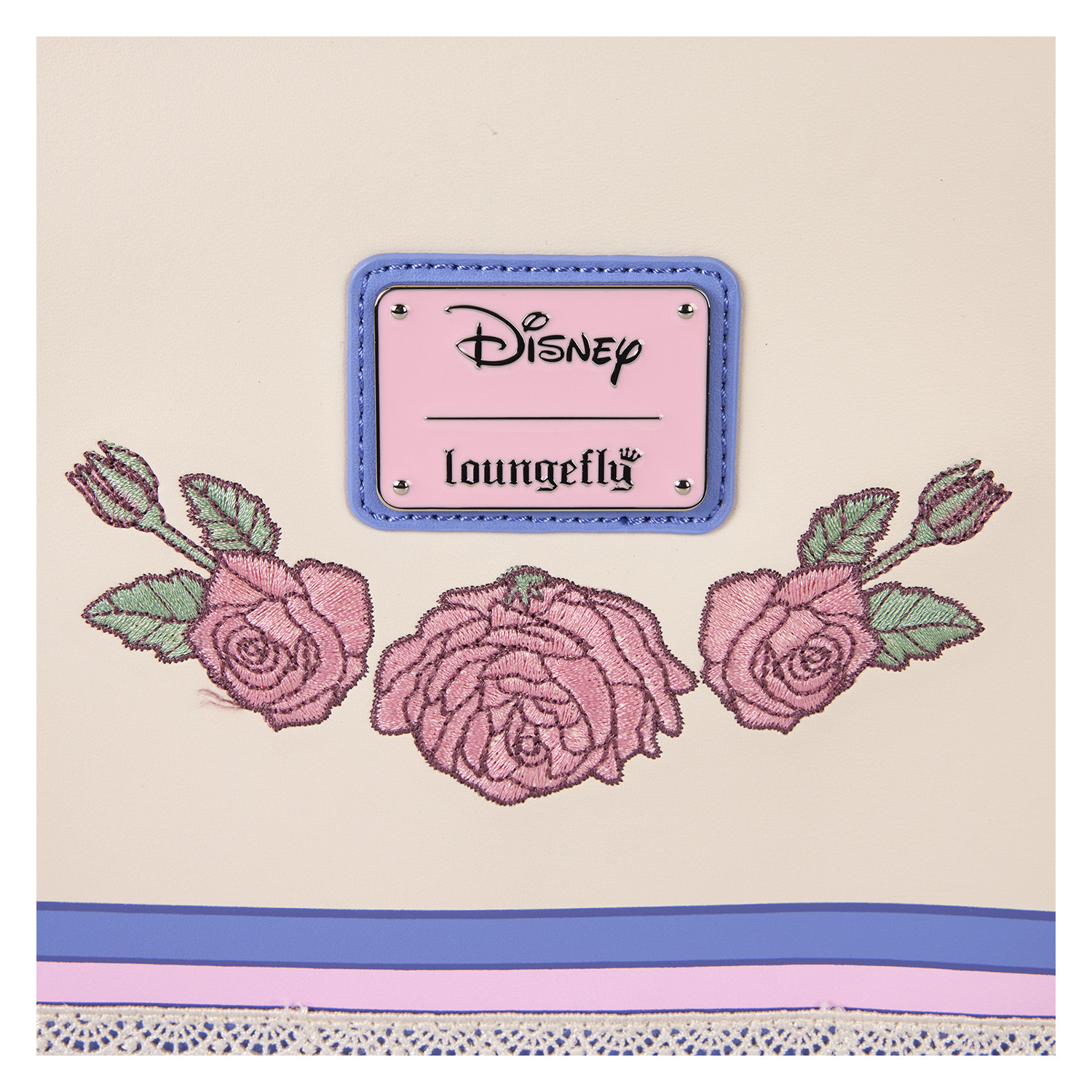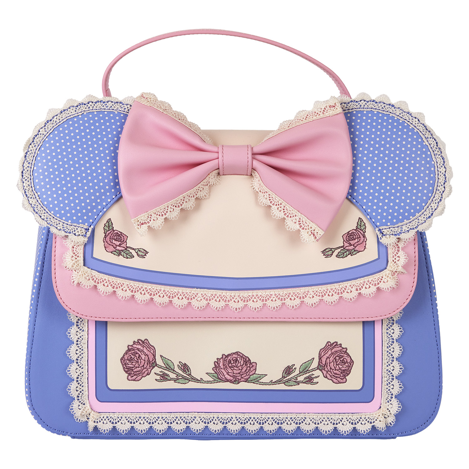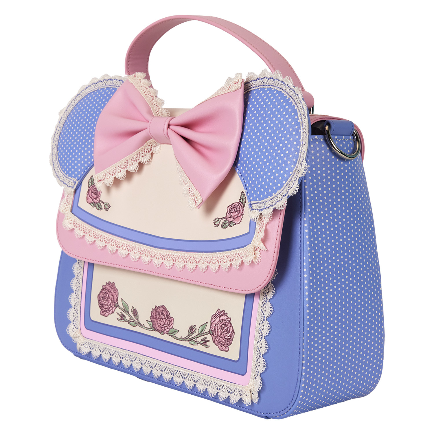 Mit dieser Disney Minnie Maus umhängetasche blüht Mode in voller Blüte. Die besonderen Minnie Maus Verzierungen machen dieses Accessoire besonders charmant. Ihre applizierten Ohren mit Polka Dot-Print ragen über die Oberseite der Tasche, und der Spitzenbesatz verleiht ihr eine zarte Note. In der Mitte der vorderen Klappe befindet sich eine rosa 3D-Schleife, und gestickte Rosen auf Vorder- und Rückseite entfalten sich als dekoratives Detail. Packen Sie Ihre Alltagsutensilien ein, brechen Sie zu einem Abenteuer auf und erleben Sie, wie der Spaß erblüht.