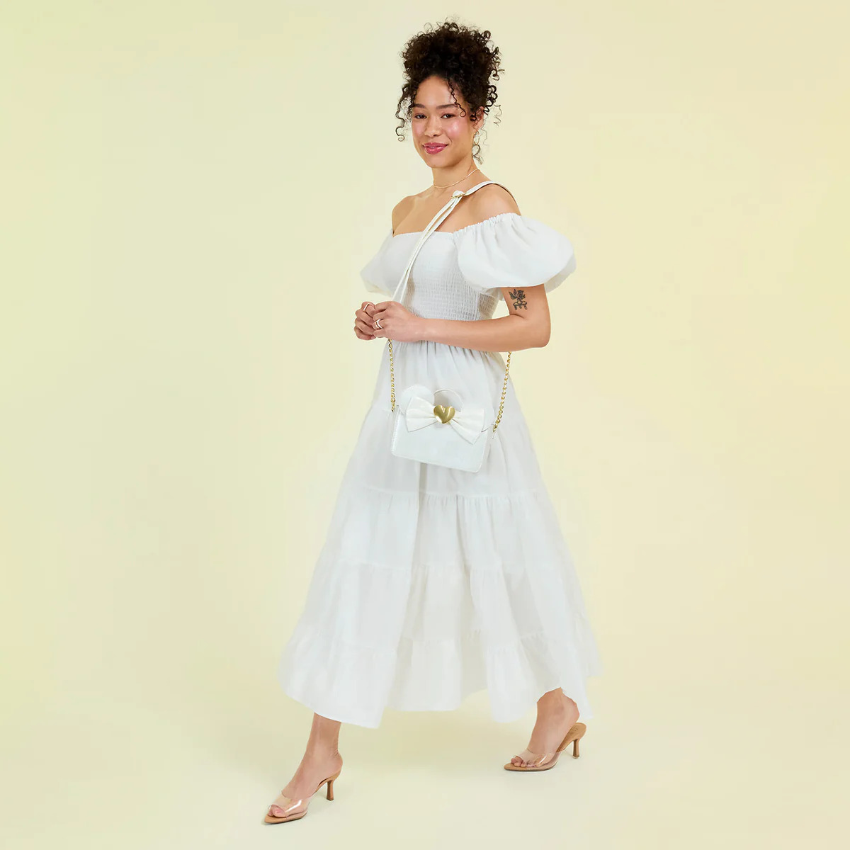Machen Sie jeden Moment bis zum großen Tag zu etwas Besonderem. Egal, ob Sie eine zukünftige Braut sind oder jemanden kennen, der es ist – diese umhängetasche ist das perfekte Accessoire für alle veranstaltungen vor und nach der Hochzeit! Strahlen Sie mit schimmerndem Kunstleder und schillernder umhängetasche. Ein goldener Herzanhänger aus geformtem Metall in der Mitte der Schleife verleiht ihr zusätzlichen Glanz. Ein wunderschönes Accessoire, das zur Schönheit Ihrer Hochzeitssaison passt!