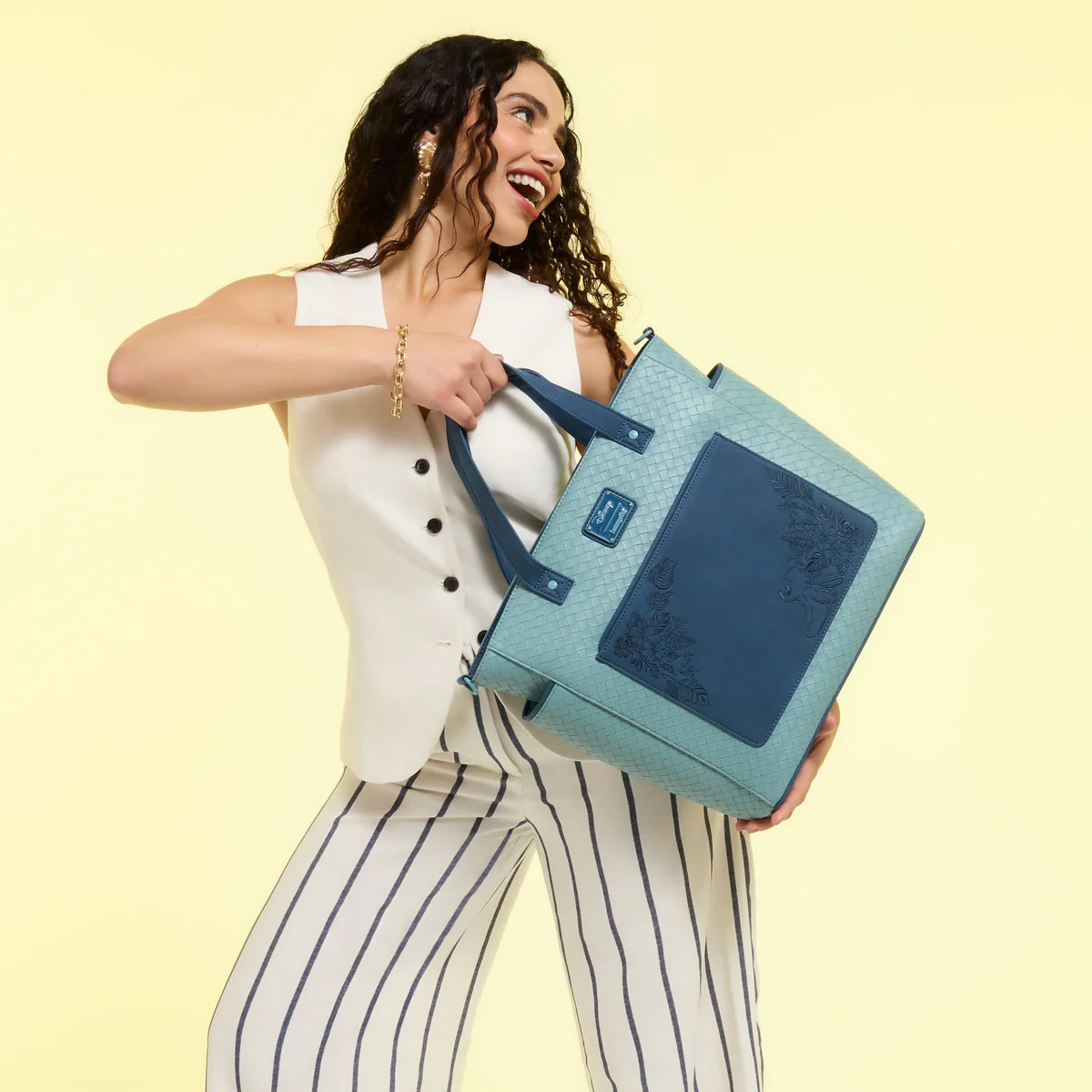 Auf der Vorderseite dieser wandelbaren tragetasche ist Stitch zwischen gestickten Blumen abgebildet. Verwandeln Sie ihn zwischen einem Rucksack und einer Umhängetasche, damit Sie ihn auf Reisen bequem tragen können!