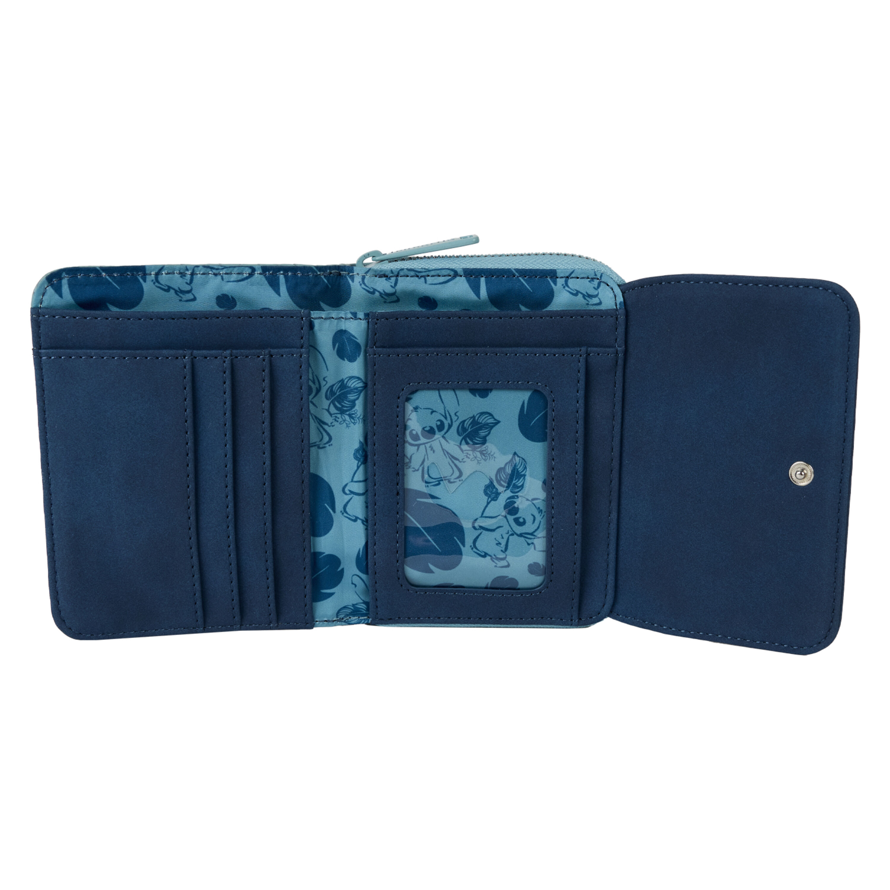 Diese Brieftasche zeigt einen geformten Metallanhänger von Stitch auf der Vorderseite mit gestickten Blumendetails. Im Inneren findest du zahlreiche Fächer für deine Karten und Bargeld, und das transparente Ausweisfach ist mit Stitchs Silhouette verziert! Es ist ZU SÜSS!