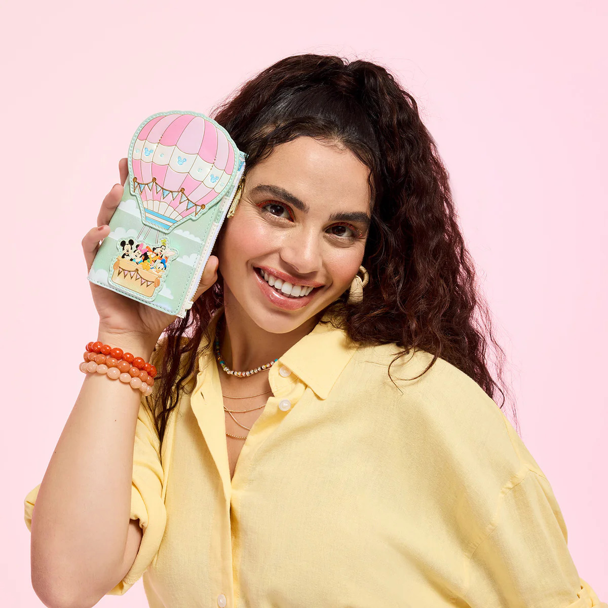 Diese Geldbörse verleiht Ihrem Stil einen neuen Schwung! Auf der Vorderseite befindet sich eine Heißluftballon-Applikation mit einigen Ihrer Lieblings-Disney-Figuren! Auf der Rückseite schweben weitere Heißluftballons am Himmel. Im Inneren finden Sie sieben Kartenfächer und ein transparentes Fach für Ihren Ausweis.