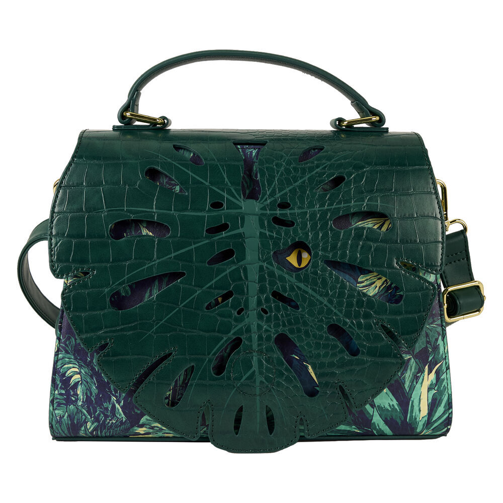 Maße: 26,04 x 8,89 x 20,32 cm. Kunstleder (Polyurethan). Verstellbarer und abnehmbarer Schultergurt. Stabiler Tragegriff. Im Dunkeln leuchtende Details. Applikationen, Krokodilleder-Kunstleder, Kunstlederanhänger, strukturiertes Kunstleder und bedruckte Details. Passendes Innenfutter.