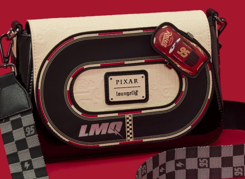 Diese Umhängetasche verfügt über eine Rennstrecke auf der Frontklappe. Eine Lightning McQueen-Applikation bewegt sich tatsächlich auf der Strecke! Ziemlich episch, oder?! Der Korpus der Tasche besteht aus glänzendem Lack-Kunstleder für ein gehobenes Tragegefühl. Auf der Rückseite der Tasche steht „95“ und auf dem Umhängegurt befindet sich ein Karomuster.