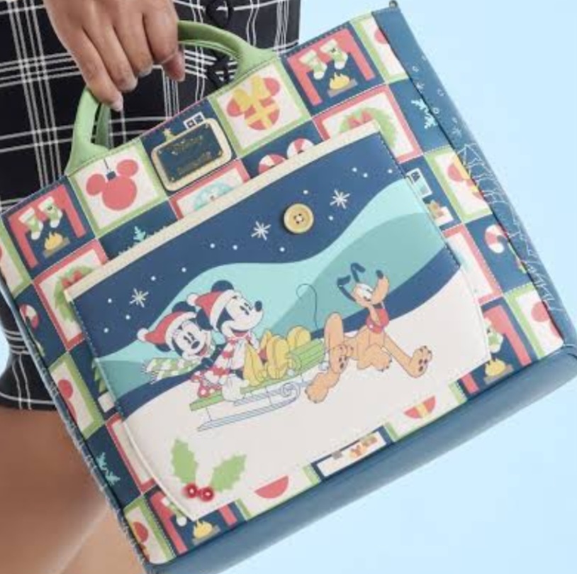 Diese wandelbare tragetasche lässt sich zwischen Tragetasche und Rucksack verwandeln. Sie zeigt ein Bild von Mickey Maus und Minnie Maus, die mit Pluto auf einem Hügel rodeln. Außerdem finden Sie ein gepolstertes, geprägtes Muster mit Strümpfen über dem Feuer, einem Mickey-förmigen Ornament, einem Minnie-förmigen Geschenk, Kränzen und vielem mehr! Die Steppung an den Seiten zeigt immergrüne Bäume!