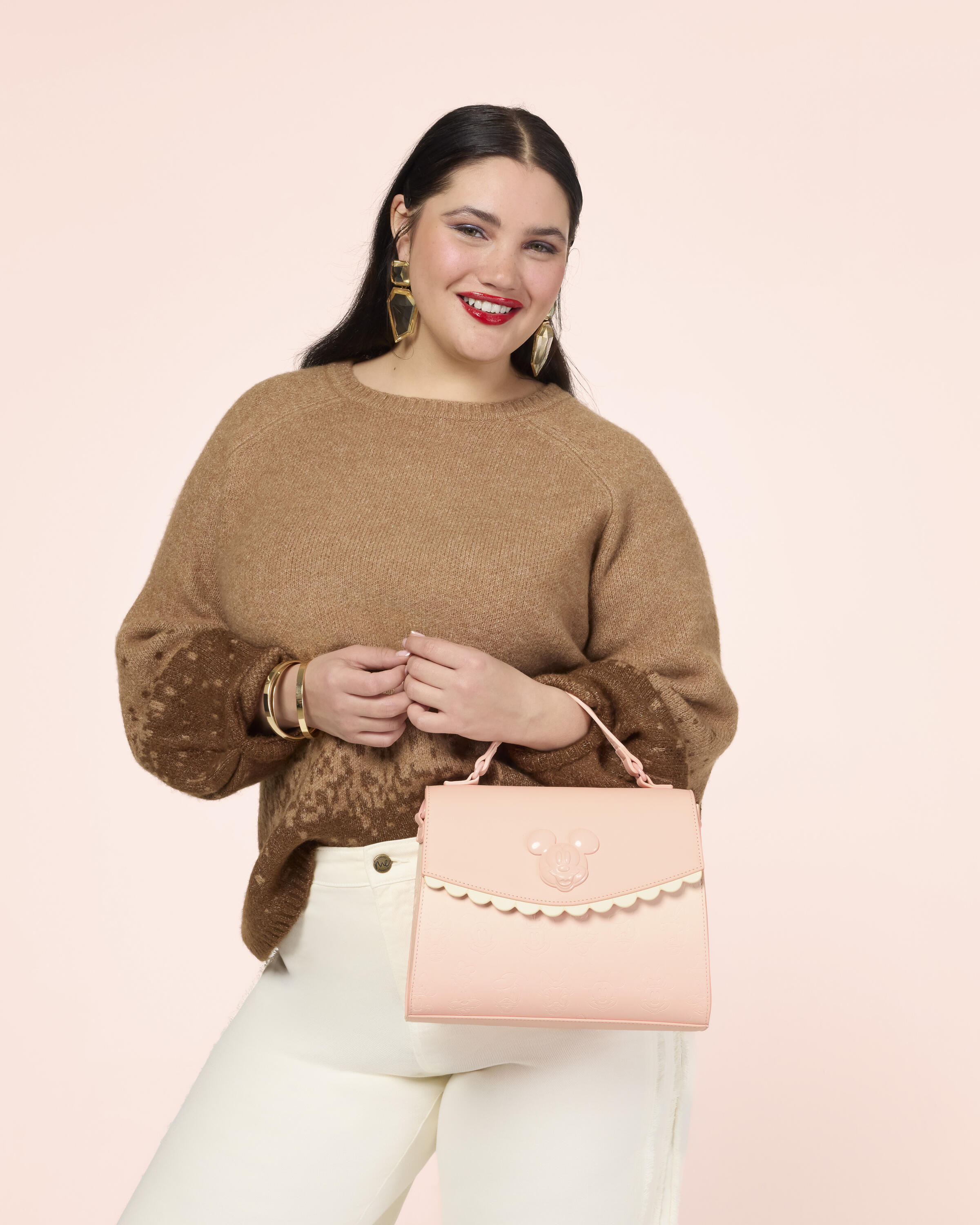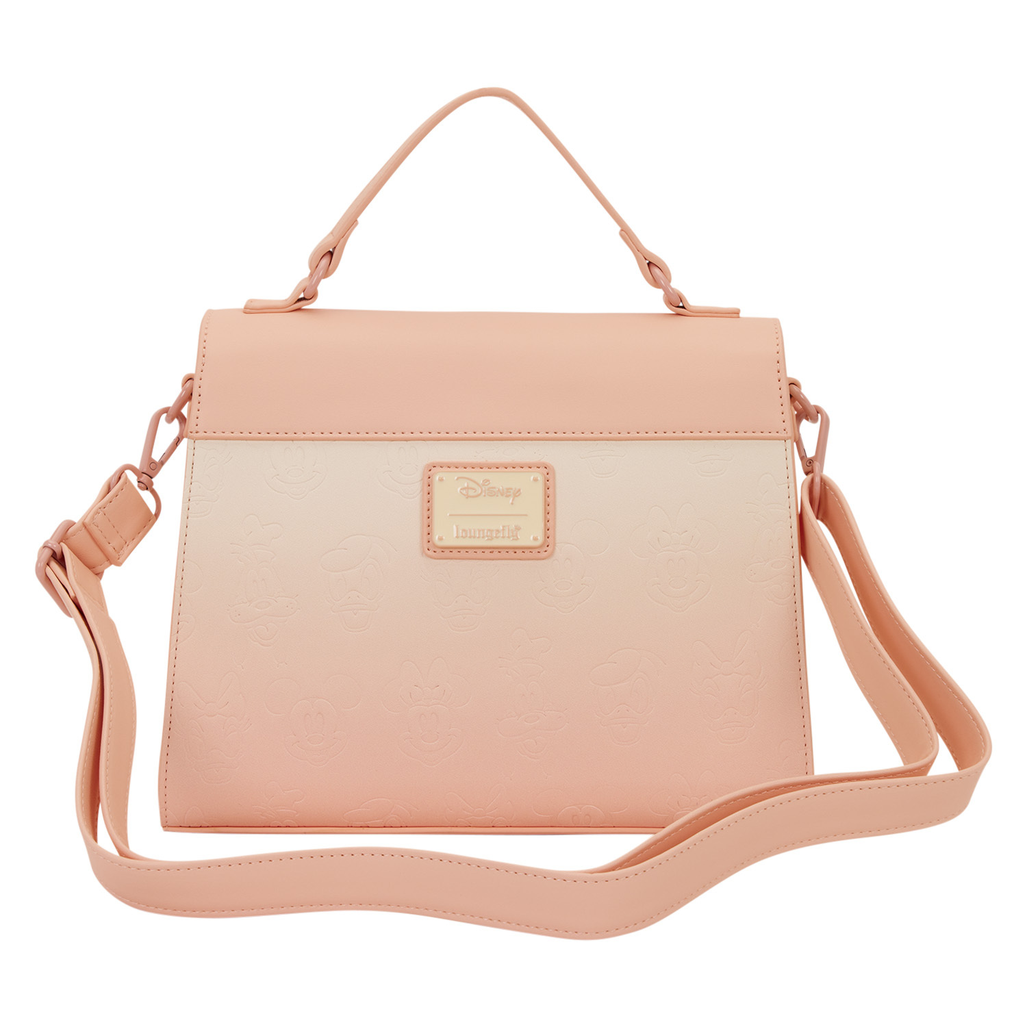 Diese Umhängetasche besticht durch ein pinkfarbenes Ombré-Design mit geprägten Details von Mickey Maus und seinen Freunden! Auf der oberen Klappe befindet sich eine bemalte, geformte Metallniete mit Mickey Maus Motiv! Trage diese Tasche am Henkel oder über der Schulter mit dem Schultergurt!