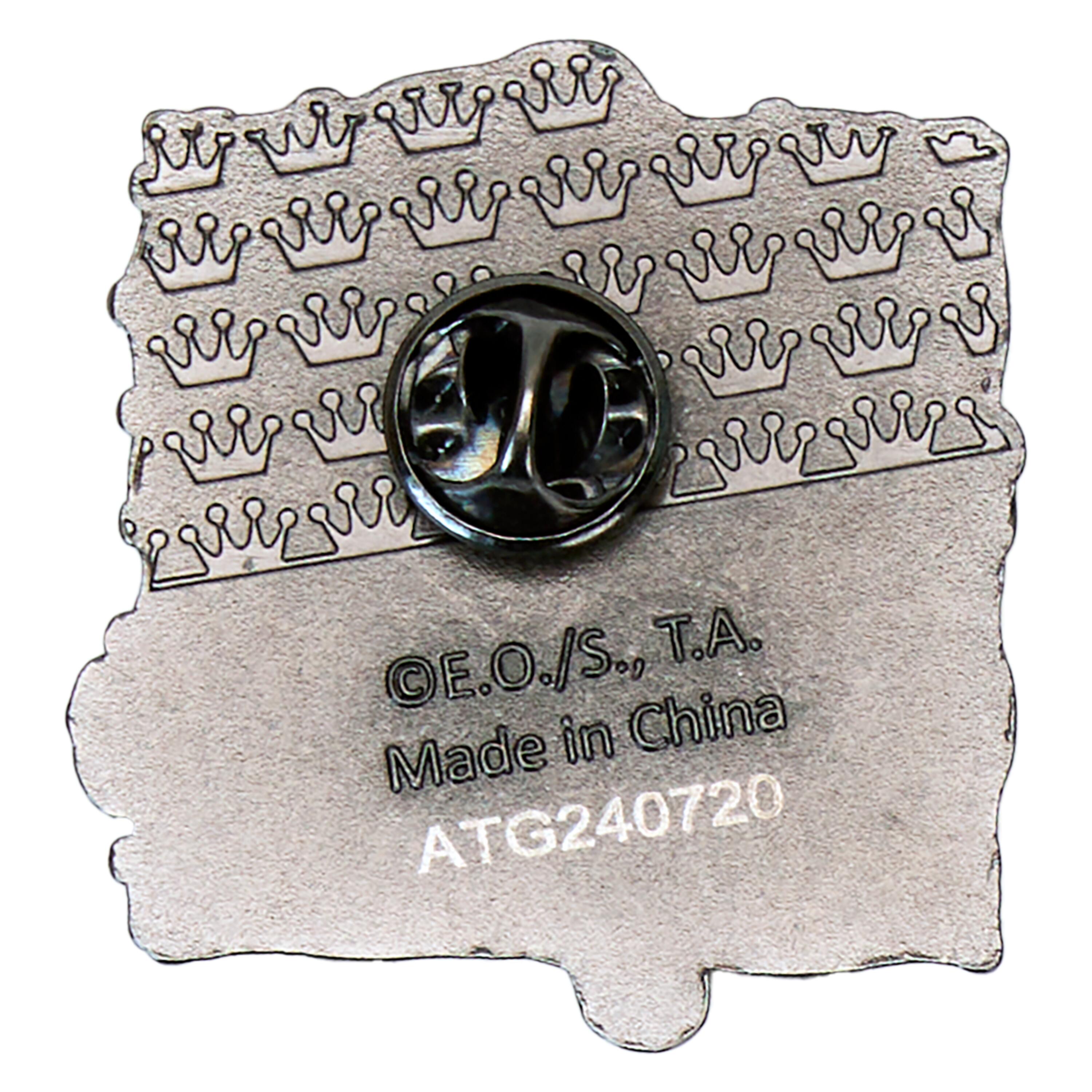 - Rückseite in Gunmetal-Farbe mit charakteristischer Funko-Kronenprägung sowie geprägter Krone auf der Rückseite