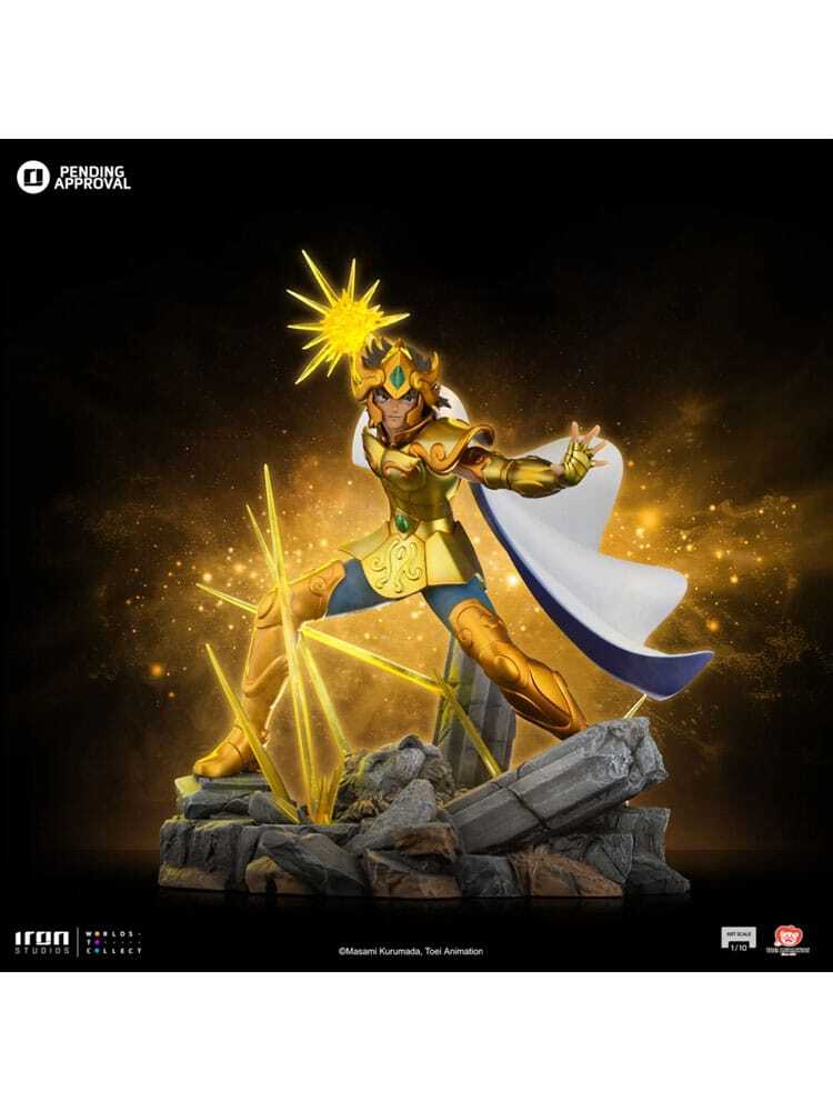 Die Statue von Leo Aiolia zeigt den merida, edlen und treuen Goldheiligen des Löwen, ein Symbol für Mut und Stärke. Stets bereit, das Heiligtum der Athene, der Göttin, der er treu dient, zu beschützen, strahlt Aiolia Macht und Geschicklichkeit aus und beweist damit, warum er zu den furchterregendsten Goldheiligen zählt. Iron Studios präsentiert stolz die Statue „Leo Aiolia – Die Ritter des Tierkreises – Art Scale 1:10“, die den Heiligen in einer dynamischen Pose zeigt, mit wehendem Umhang und glänzender goldener Rüstung, bereit, seinen charakteristischen Blitzplasma-Angriff zu entfesseln. Die Statue ruht auf einem detailreichen Sockel, der die sakrale und majestätische Atmosphäre des Heiligtums widerspiegelt.