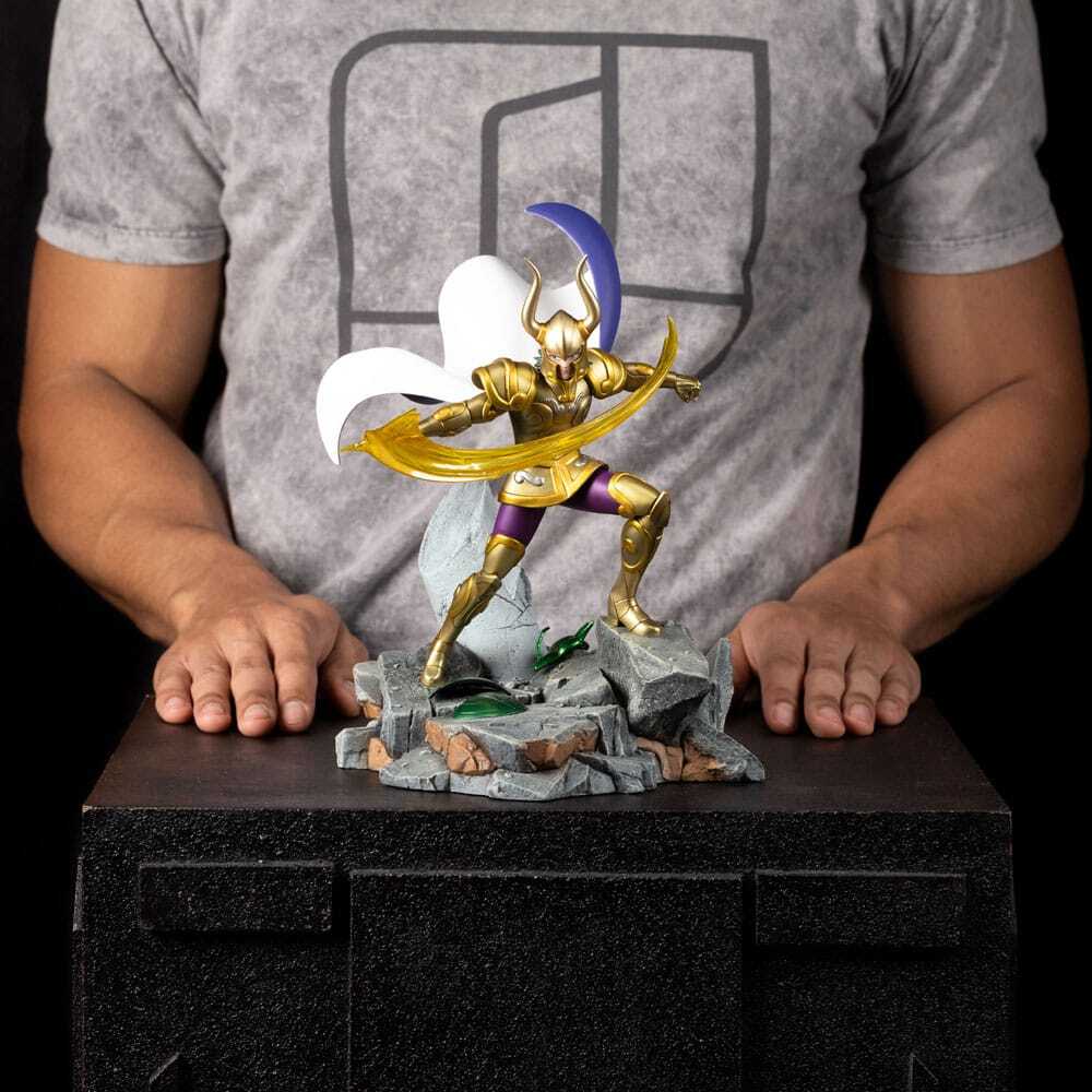 Diese handbemalte Statue im Maßstab 1:10 aus hochwertigem Resin besticht durch detailreiche Modellierung und einen Sockel, der von den heiligen Zwölf Tempeln des Tierkreises inspiriert ist. Ein Muss für alle Fans der Ritter des Tierkreises, die einen der edelsten Krieger des Heiligtums feiern.