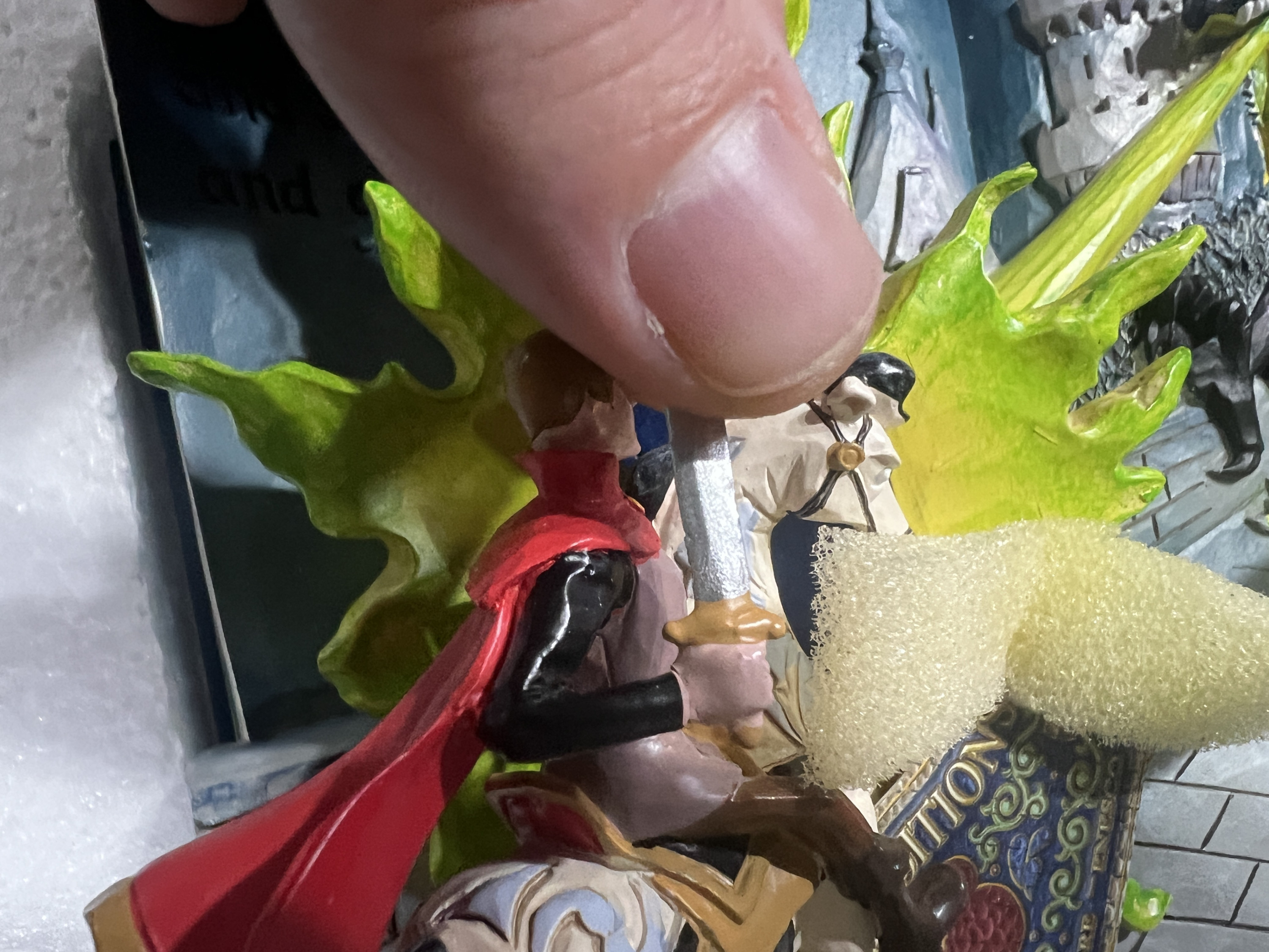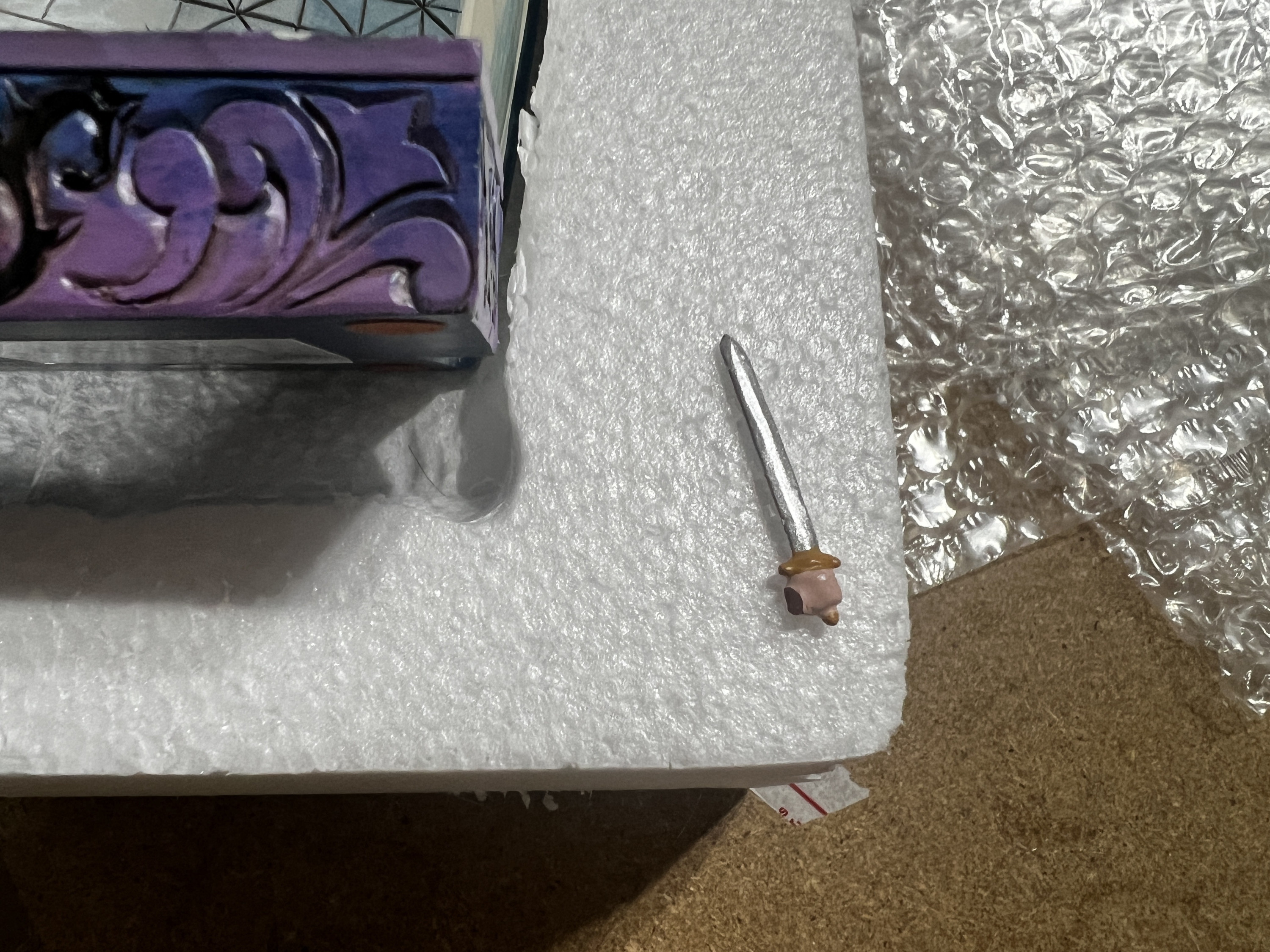 - Hand mit Schwert gebrochen. Möglichkeit zum erneuten Verkleben