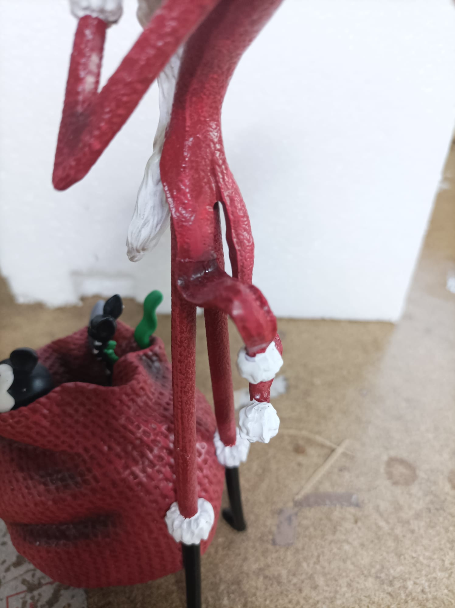 - Der kleine graue Kopf im Sack des Weihnachtsmanns wurde wieder zusammengeklebt.