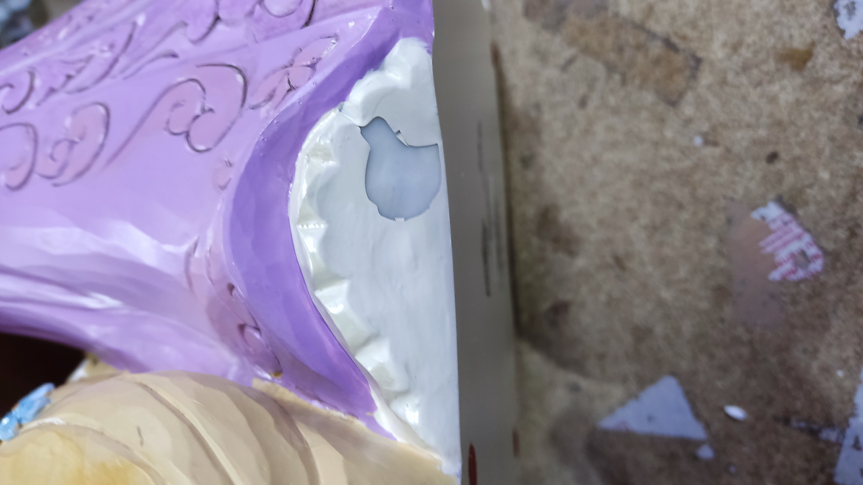 - Leimiger Farbverlust unter der Figur
