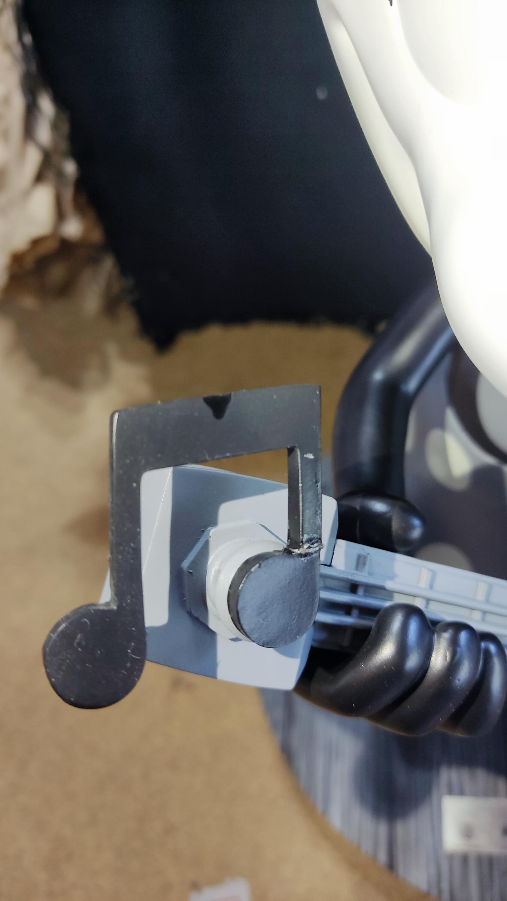 - Die Musiknote wurde wieder angebracht; eine leichte Klebespur ist sichtbar