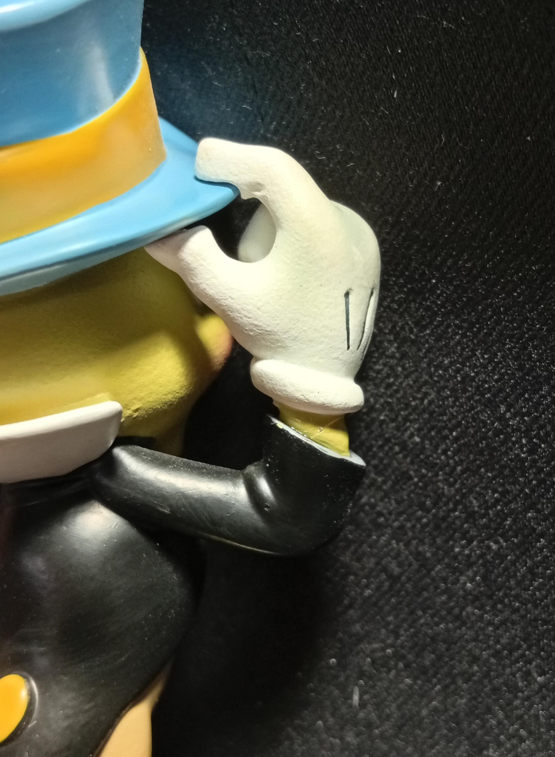 - Jiminy Crickets Bein, Hand und Regenschirm wurden wieder zusammengeklebt.