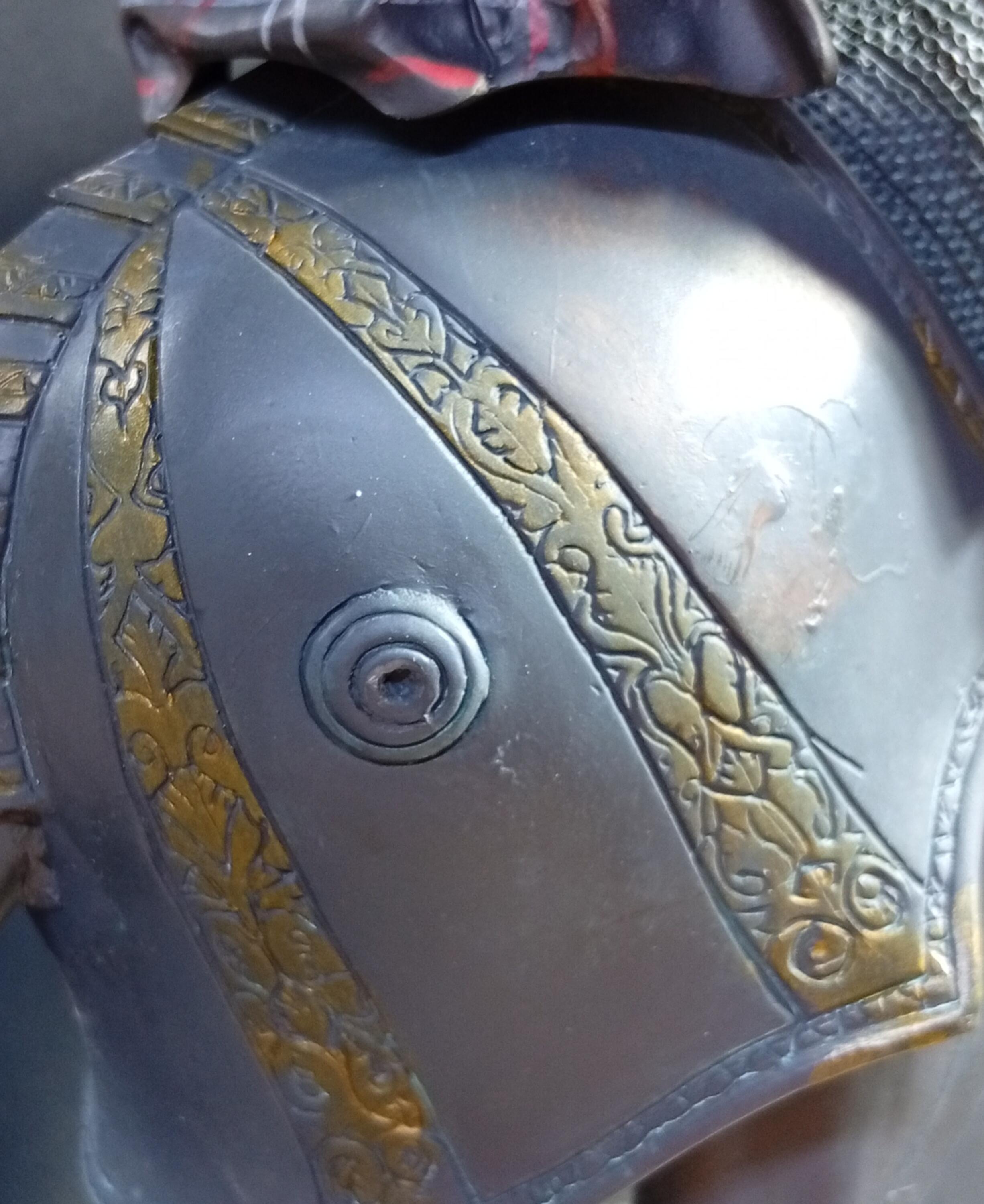 - Einer der Zaumzeugspitzen des Pferdes fehlt.