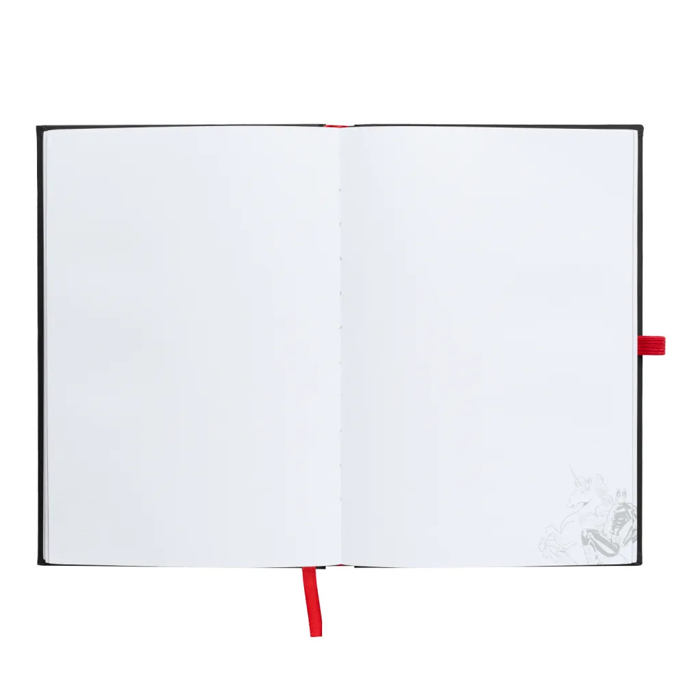 A5-Notizbuch (14,8 x 21 cm) mit LED-Beleuchtung. Es verfügt über einen Soft-Touch-Hardcover-Einband, abgerundete Ecken, eine Klebebindung, ein individuell gestaltbares Innenteil im Bullet-Style, ein Lesebändchen, eine Innentasche und eine elastische Stiftschlaufe. Das Notizbuch enthält 96 Blatt (192 Seiten) Papier mit einer Stärke von 100 g/m². Die Beleuchtung des Einbands wird durch Drücken eines Knopfes in der Mitte unten aktiviert. Es wird mit drei 1,5-V-LR1130-Batterien (im Lieferumfang enthalten) betrieben.