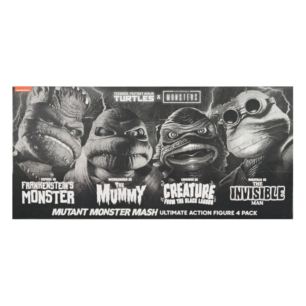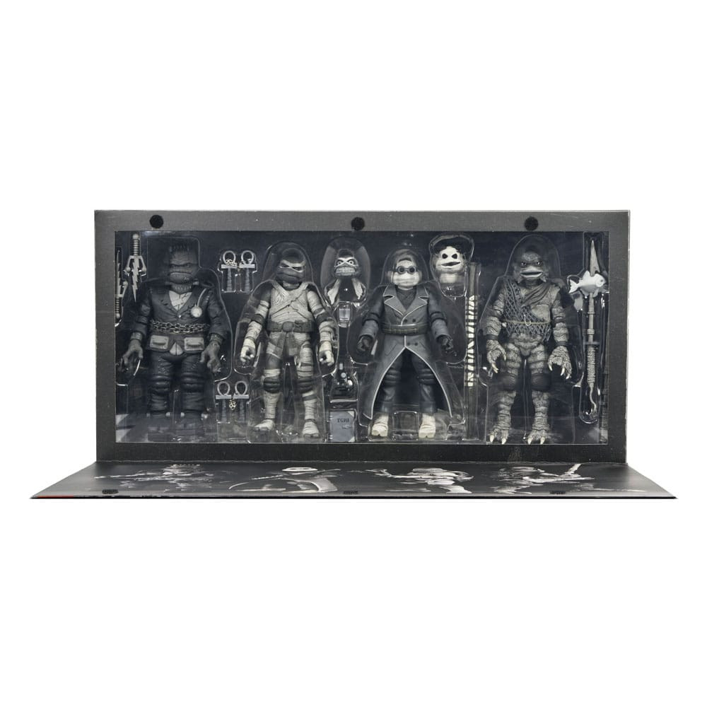 Universal Monsters X Teenage Mutant Ninja Turtles Pack 4 Turtles Schwarz-Weiß-Figuren 18 Cm