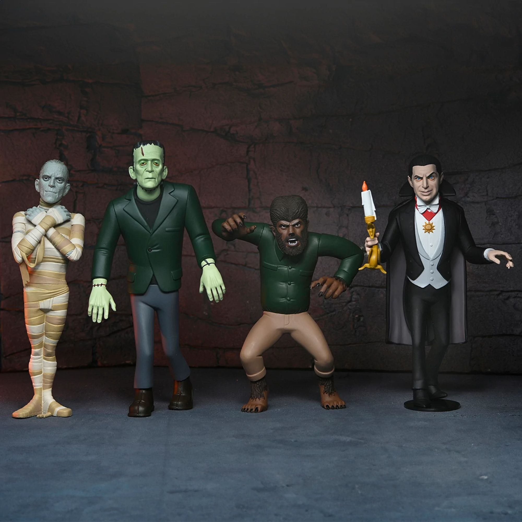 Tauche ein in unsere Horror-Kollektion mit diesen süßen kleinen Monstern! Fans der berühmten Monster werden diese Figurenserie lieben, die den Wolfsmenschen, die Mumie, Dracula und Frankensteins Monster umfasst! Jede Figur ist ca. 15 cm groß und wird in einer neuen Verpackung mit einem gestanzten Hintergrund geliefert. Höhe: 15 cm