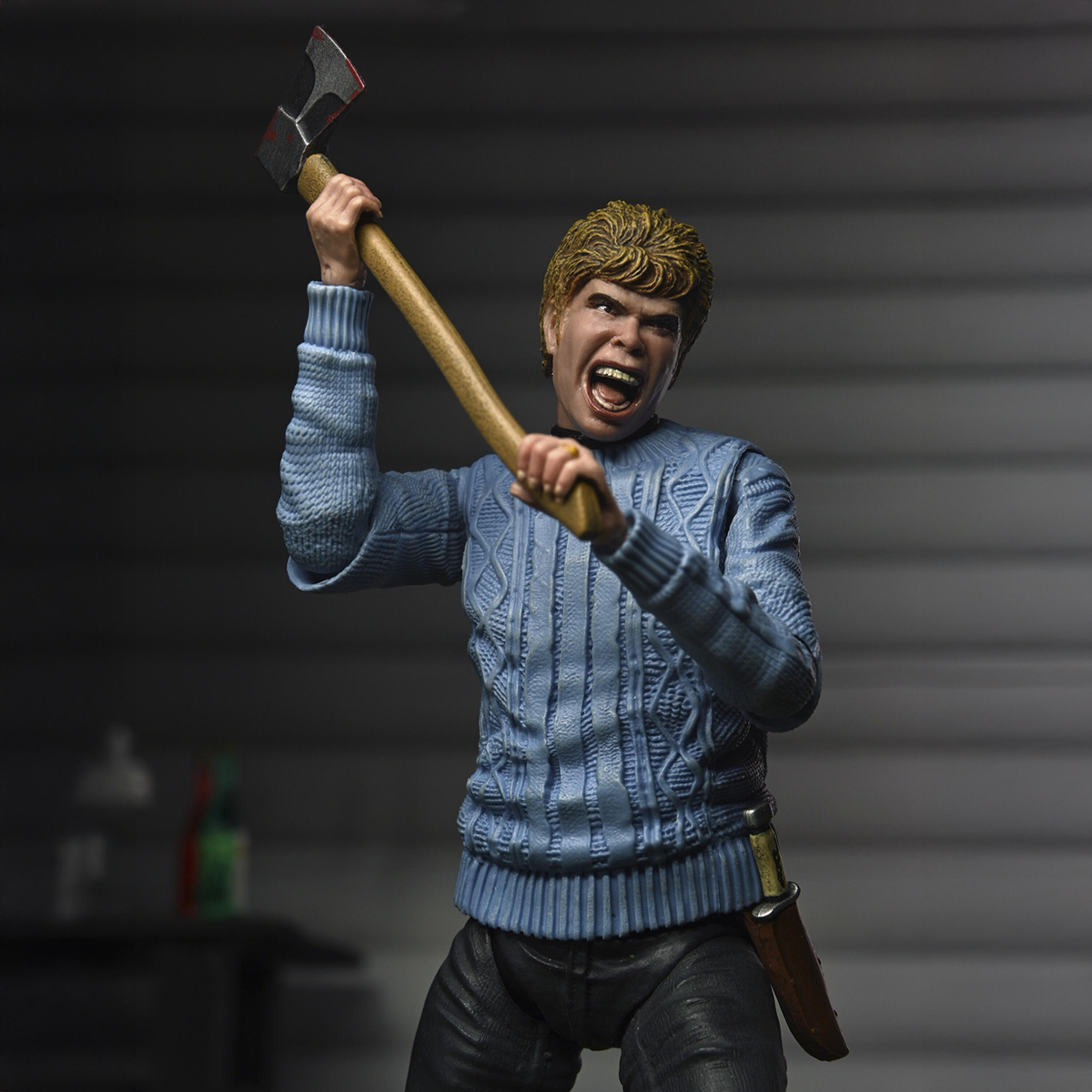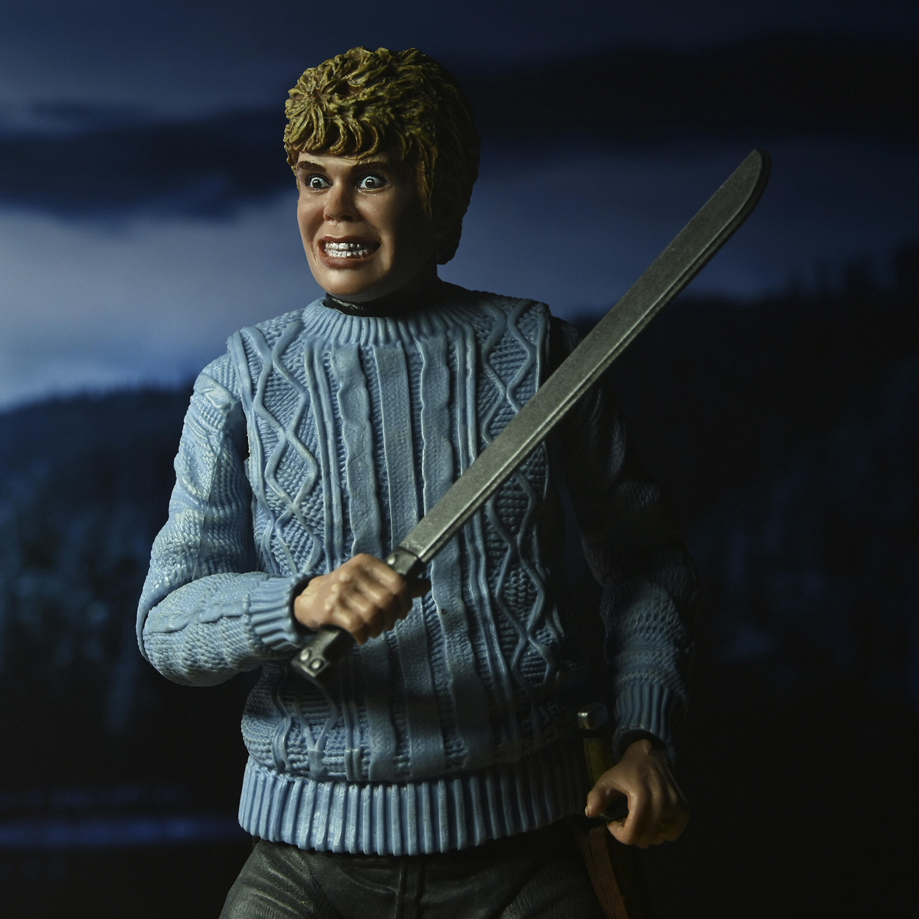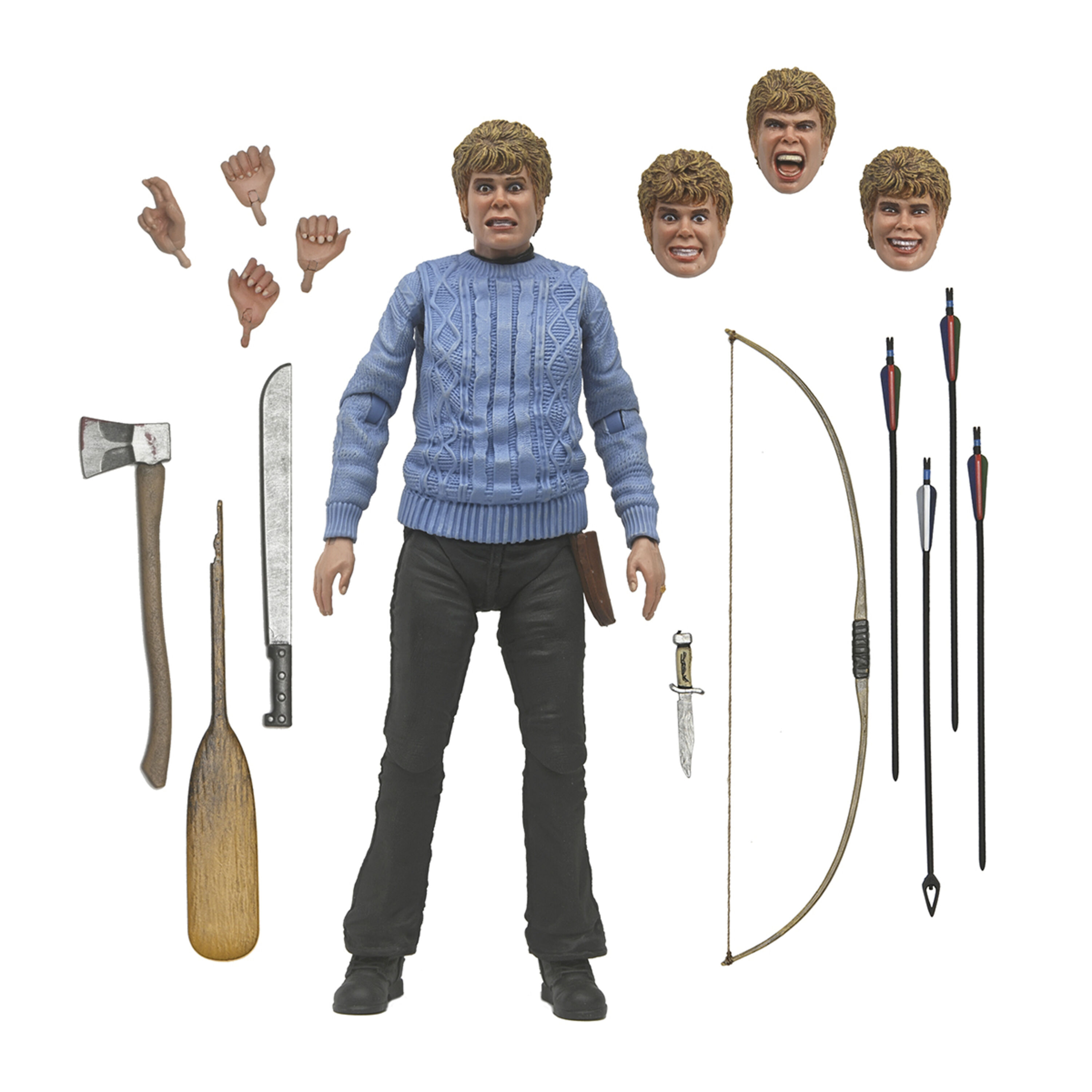 Diese 18 cm große, bewegliche Figur ist ein Muss für Horrorfilm-Fans und enthält austauschbare Köpfe und Hände, ein Messer, eine Axt, eine Machete, ein zerbrochenes Ruder, einen Bogen und Pfeile.