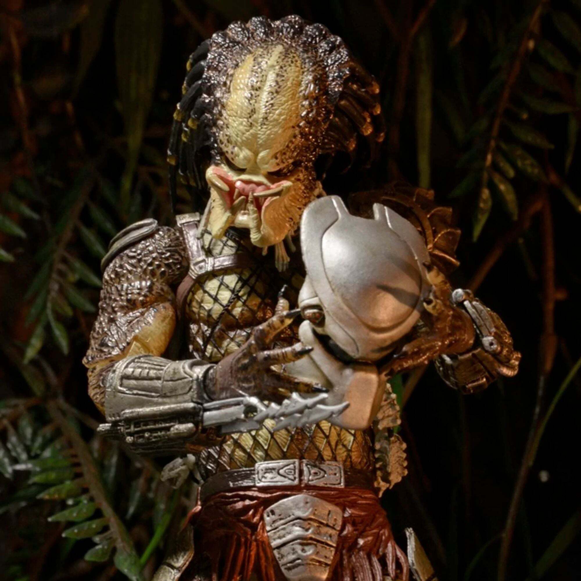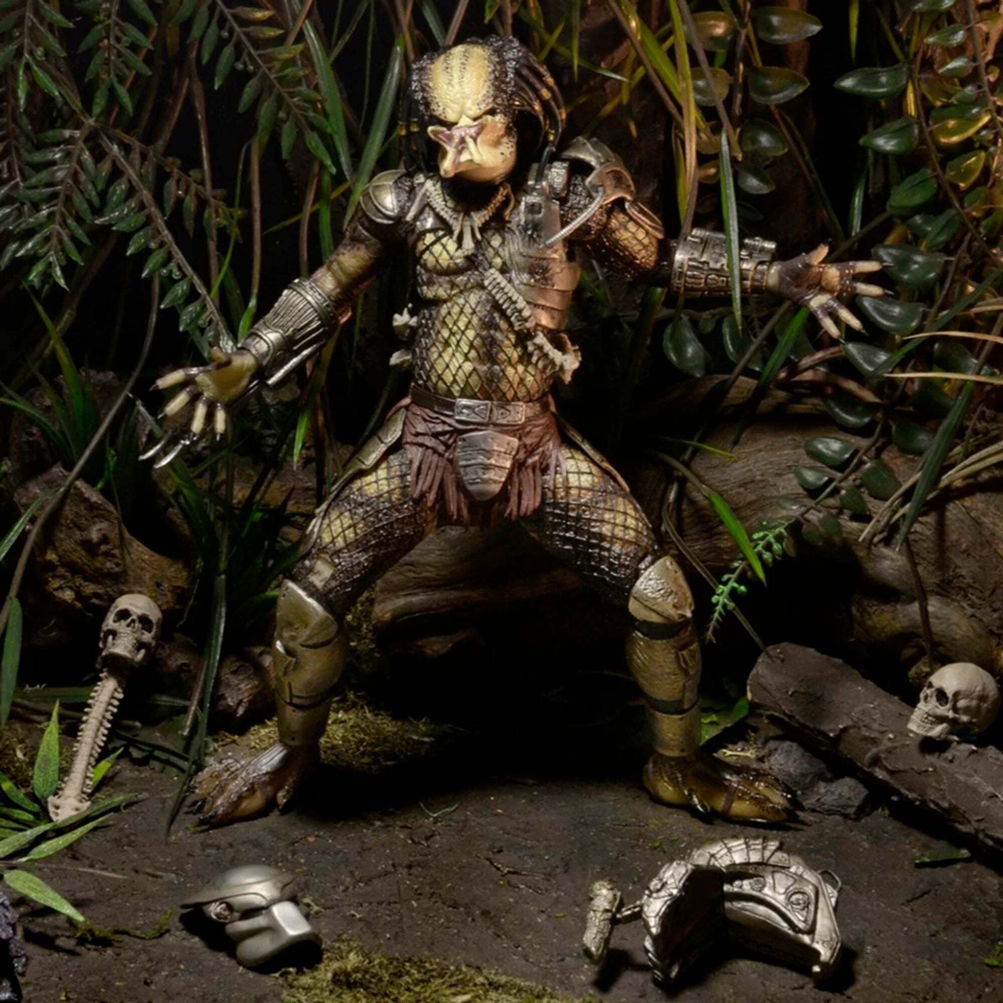 Endlich sind die klassischen Predators zurück, mit der Bürgermeister Verbesserungen! Inspiriert vom originalen Predator-Film präsentieren wir die ultimative Sammleredition des Jungle Hunter. Dieser Hunter hat die „Ultimate“-Behandlung erhalten, einschließlich zusätzlicher Artikulation in Bizeps (Bizepswirbel), Ellbogen (doppelte Ellbogengelenke) und Rumpf sowie einem zu öffnenden Armband! Er kommt mit austauschbaren Köpfen und Händen sowie einer Wirbelsäule, einer Maske, einem Kanonenschusseffekt und einem menschlichen Schädel. Präsentiert in einer Vitrine, ideal für Sammler. Höhe: 18 cm