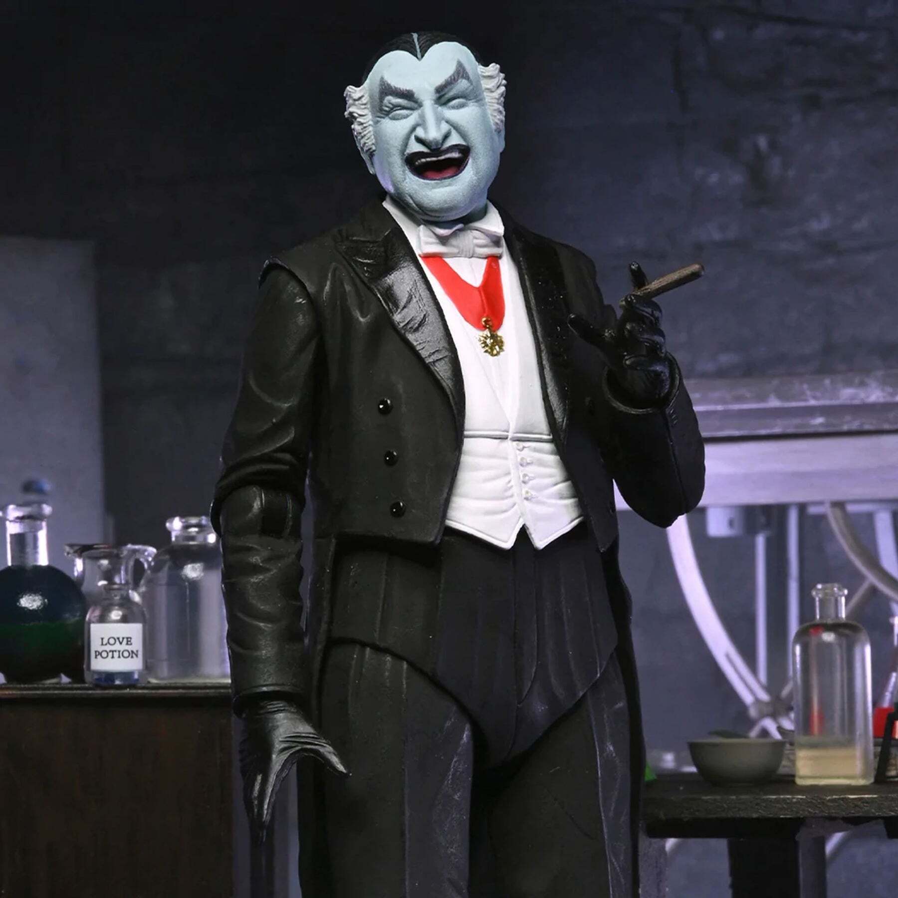 Betreten Sie die Mockingbird Lane 1313 mit der NECA Ultimate Grandpa Munster Figur! Inspiriert von der klassischen Sitcom „The Munsters“ aus den 1960er Jahren, fängt diese detailreiche, 18 cm große, bewegliche Figur den schelmischen Charme des beliebten TV-Vampirs perfekt ein. Höhe: 18 cm