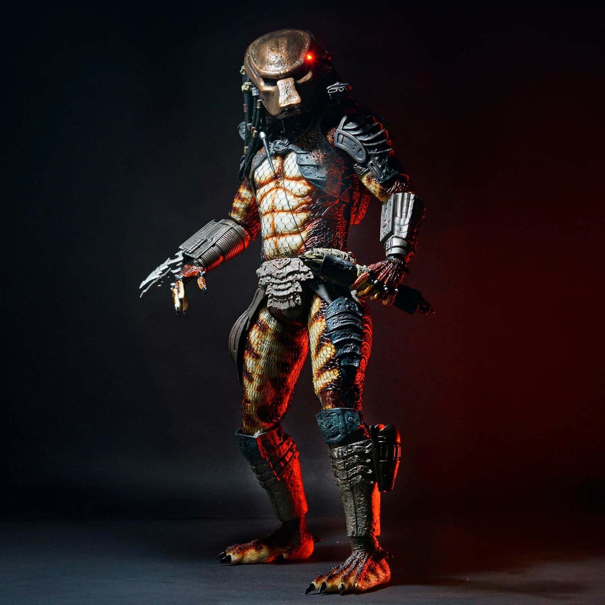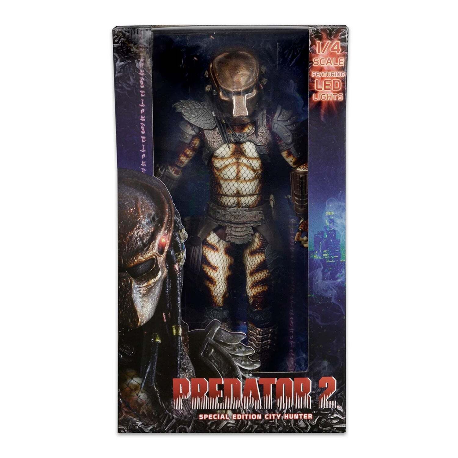 Größer, detailreicher und beeindruckender als je zuvor. Diese 48 cm große Predator City Hunter Actionfigur im Maßstab 1:4 ist ein Sammlerstück in limitierter Auflage. Mit voller Beweglichkeit, unglaublichen Details, einem robusten Design, zahlreichen Zubehörteilen und LEDs in der Maske und im Achselcomputer ist diese Figur ein absolutes Muss für jeden Predator-Fan. Präsentiert in einer atemberaubenden Fensterbox.