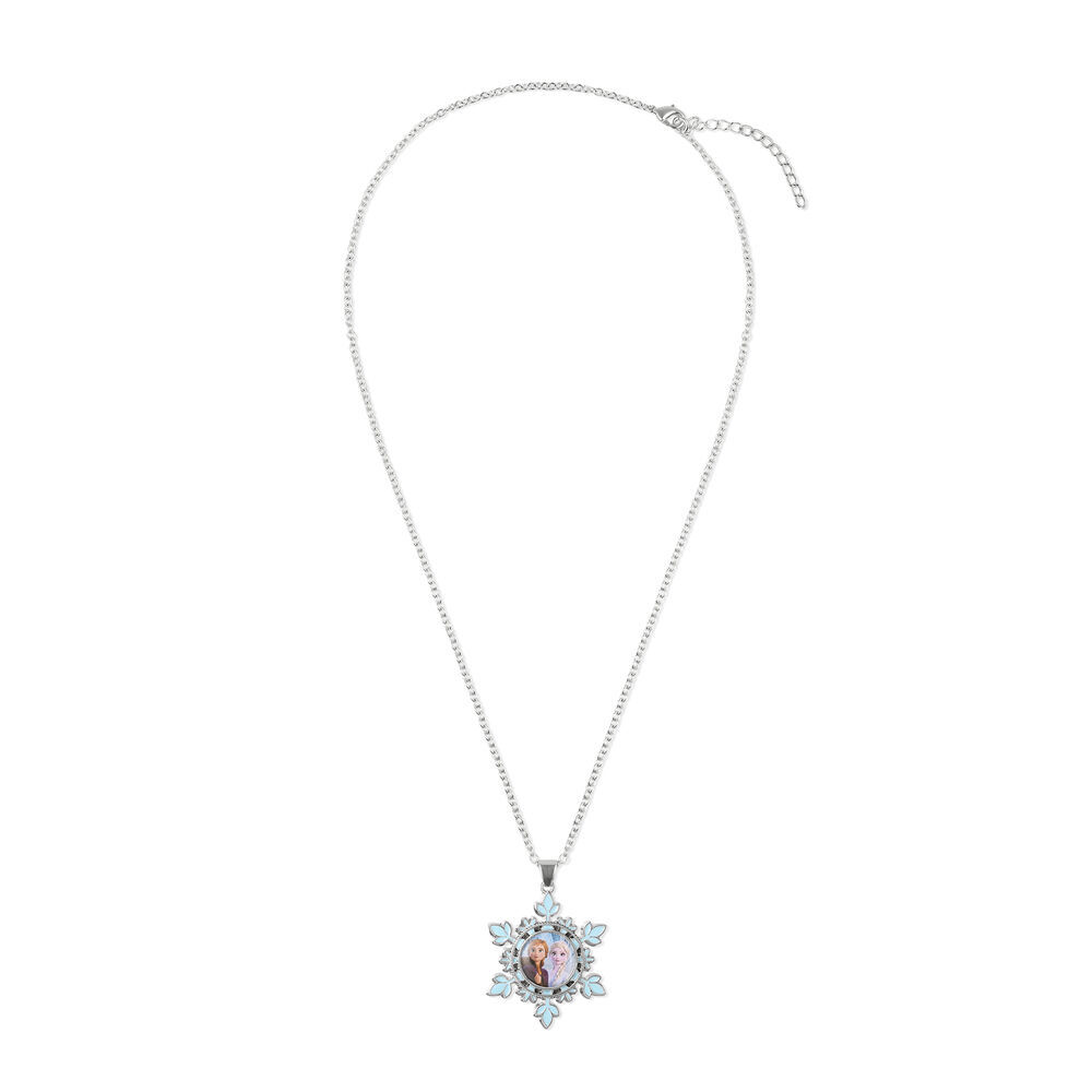 Die mit Sterlingsilber beschichtete Halskette wird durch das Anhängerdesign der bezaubernden Elsa und Anna im ikonischen Schneeflockendesign ergänzt.