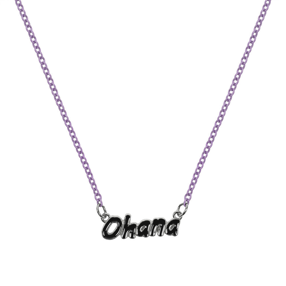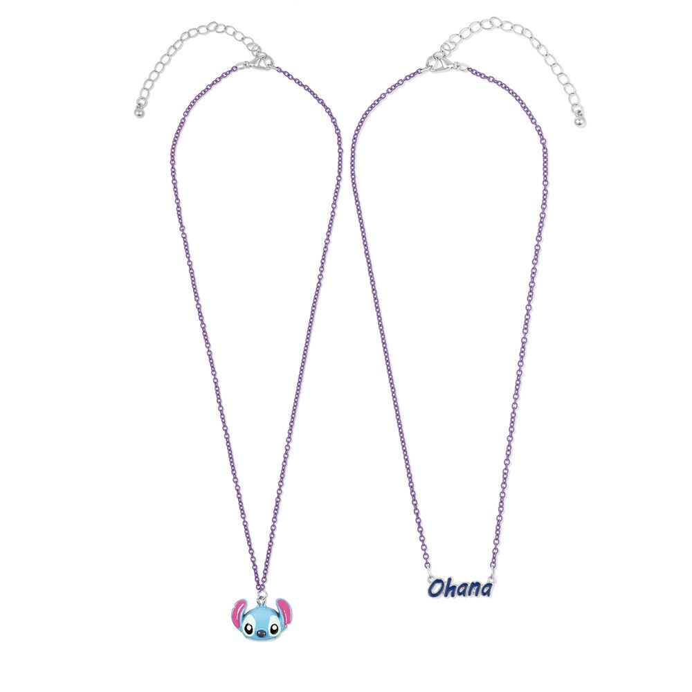 Eine Halskette mit zwei Schichten, eine mit Ohana und die zweite mit Stitch selbst.