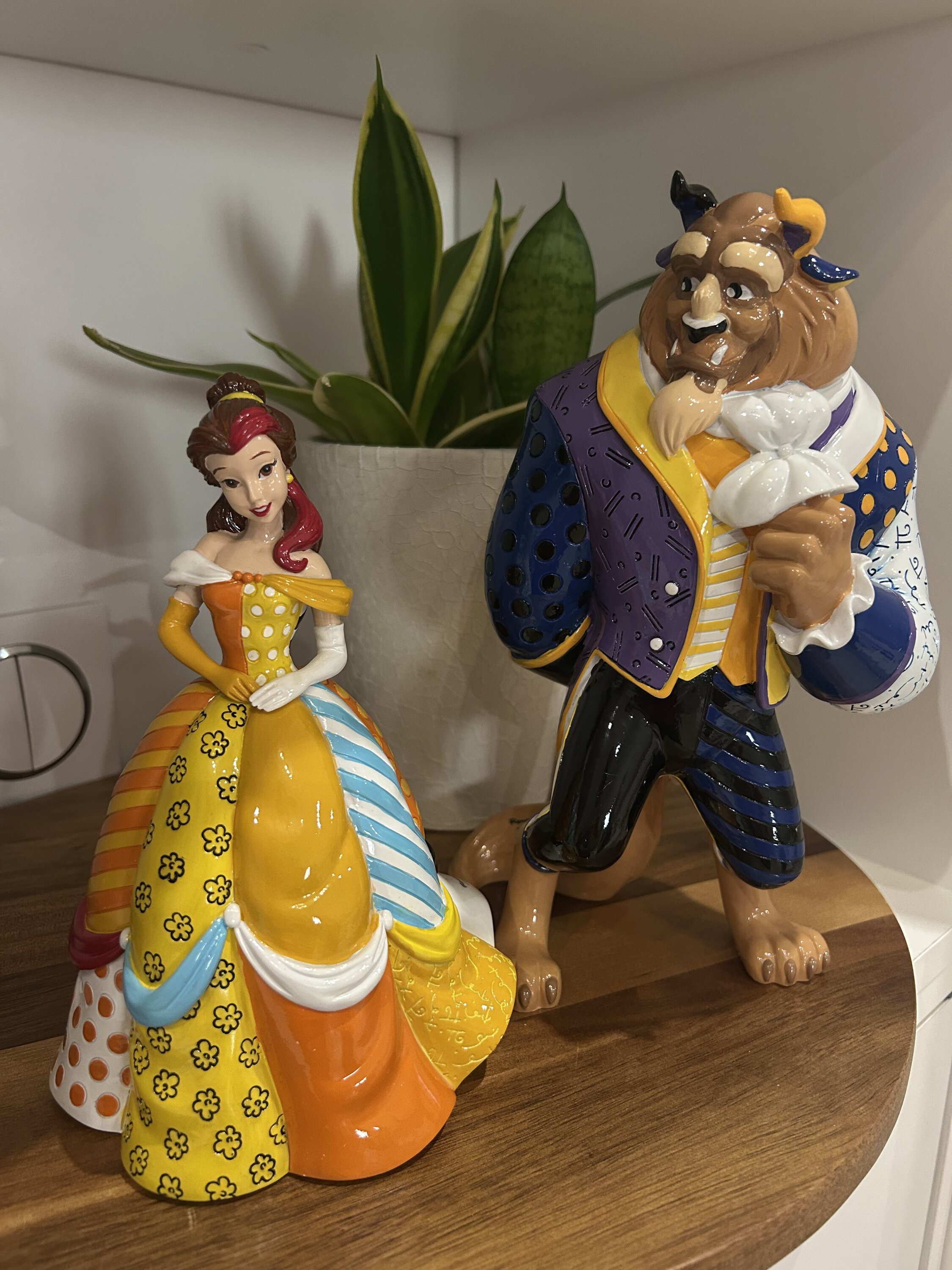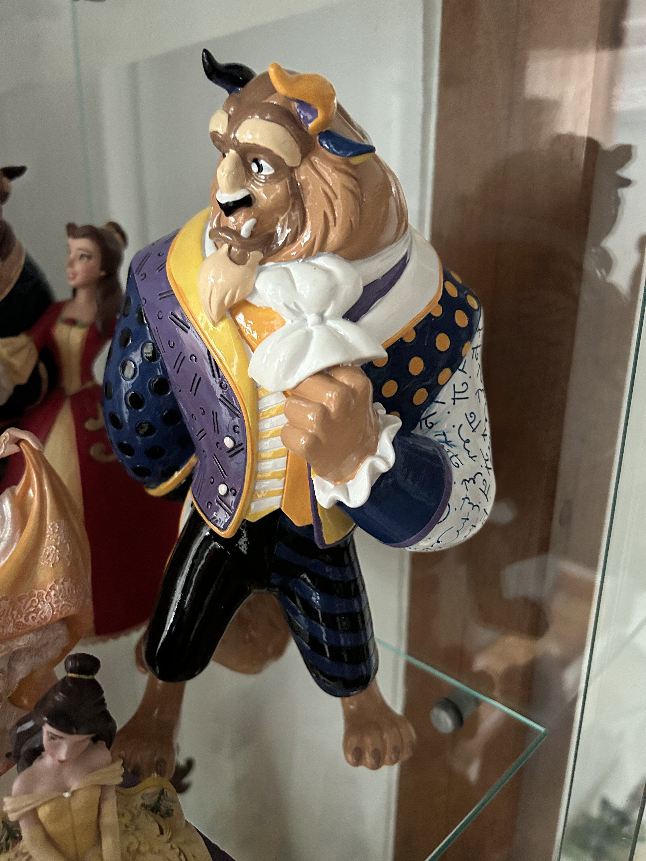 Die Biest-Figur in ihrer schönsten Kleidung. Passt perfekt zur Belle-Figur (6010314). Jede Disney by Britto-Figur, dekoriert im Pop-Art-Stil des internationalen Künstlers Roméro Britto, besteht aus handbemaltem Harz mit glänzender Lackierung.