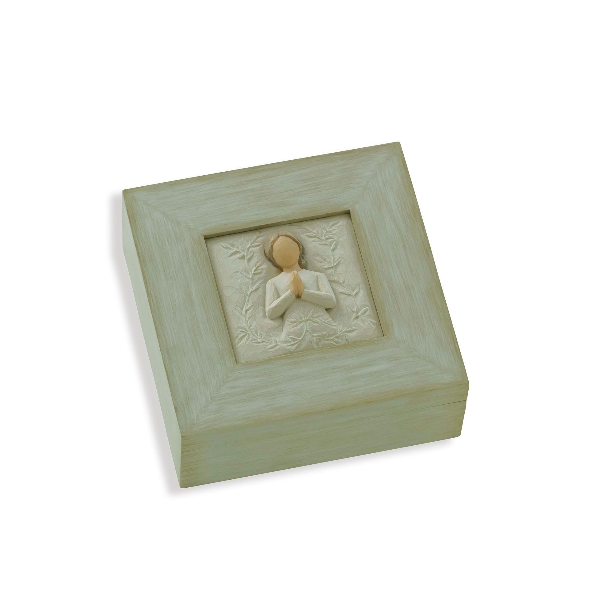 Jede von Susan Lordi entworfene Willow Tree-Schachtel besteht aus Harz und Holz, ist handbemalt und wird in einer Geschenkbox geliefert. Diese Schachteln sind kein Kinderspielzeug. Nur für Erwachsene bestimmt.